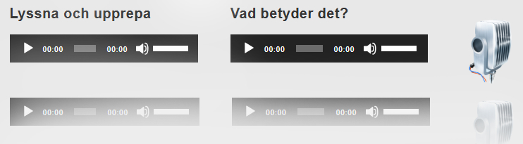 Steg 1 (upprepade sekvenser) samt Steg 2 (varje mening separat med översättning och slutligen inspelning.